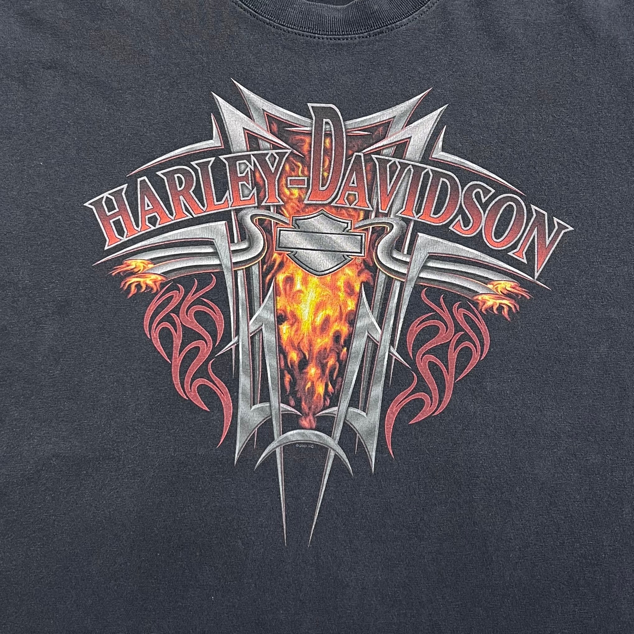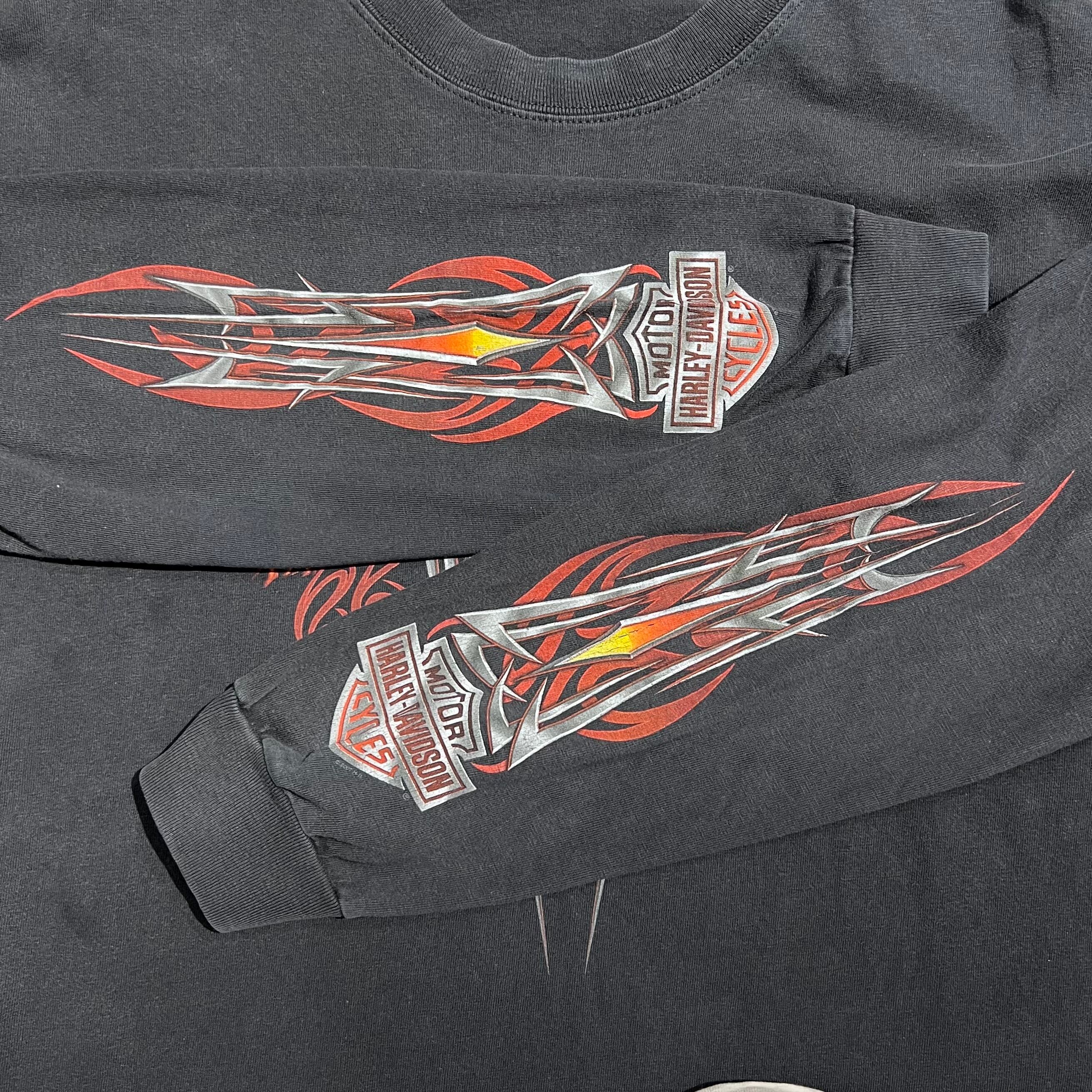 Tシャツ 90年代 00年代 ビンテージT ヴィンテージT フェード バンドT バンT ツアーT ハーレー ハーレーダビッドソン フレイム アームプリント ロングスリーブ 長袖 ロンT ビンテージ