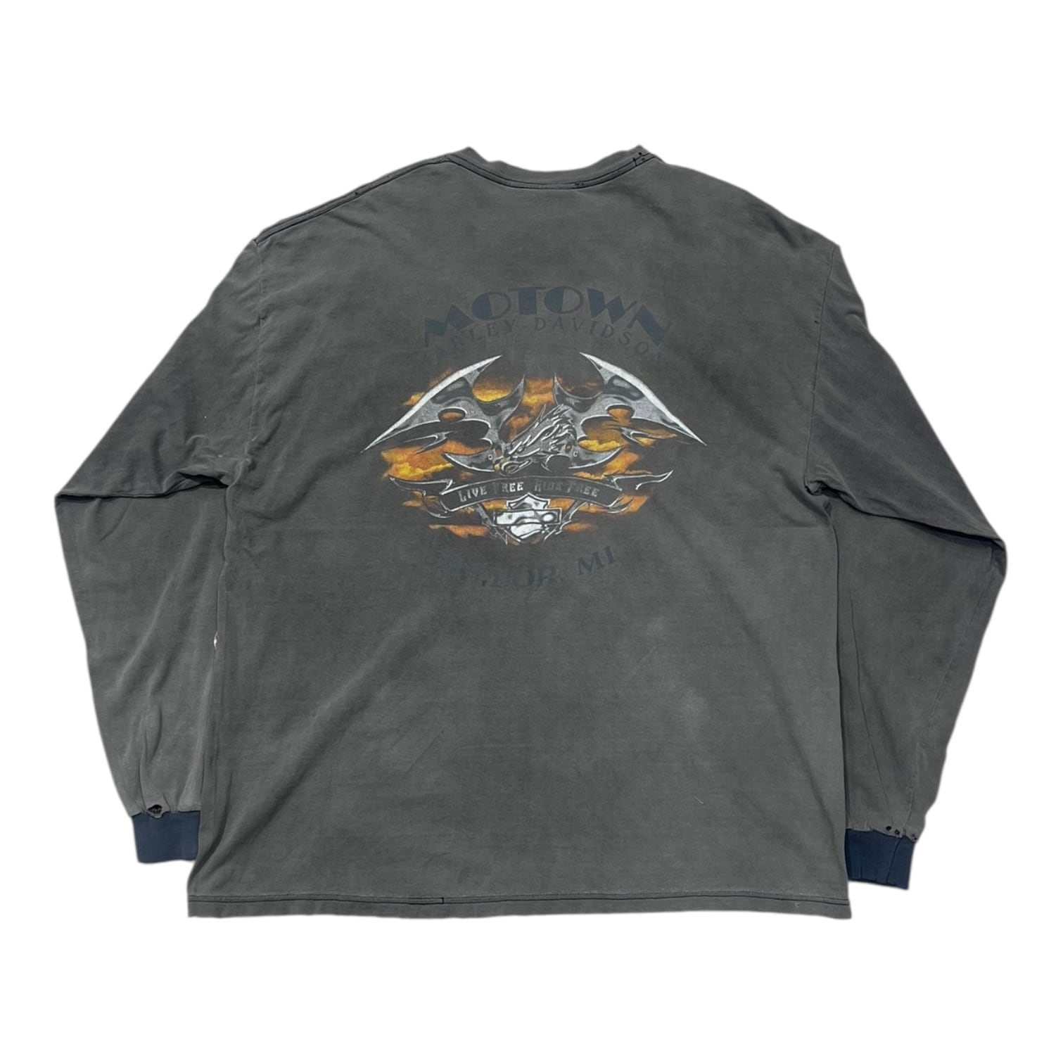 Tシャツ 90年代 00年代 ビンテージT ヴィンテージT フェード バンドT バンT ツアーT ハーレー ハーレーダビッドソン フレイム アームプリント ロングスリーブ 長袖 ロンT ビンテージ